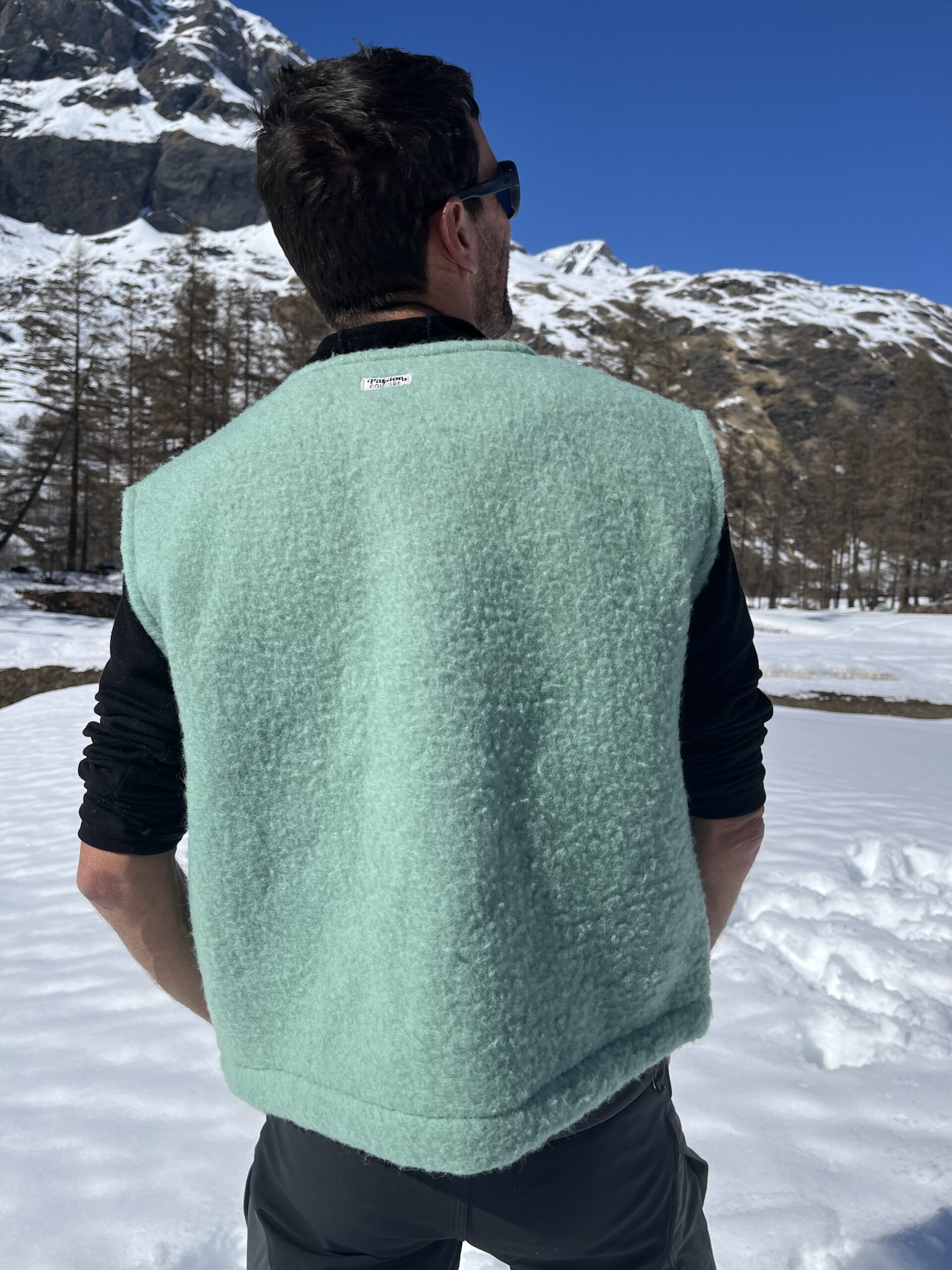 Le gilet en laine bleu-vert