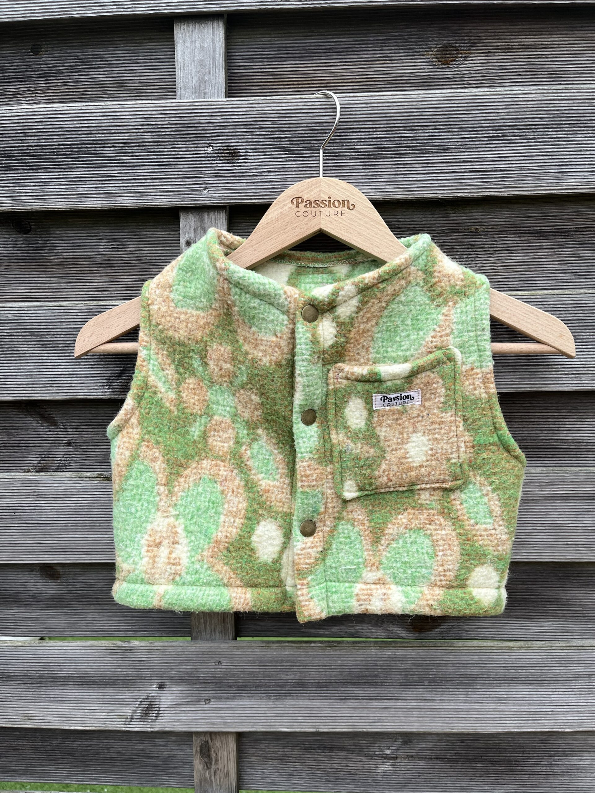 Le gilet enfant est confectionné à partir de couverture et peut s’assortir avec la polaire adulte. Seul ou en duo, l’enfant n’en sera que tout mignon.