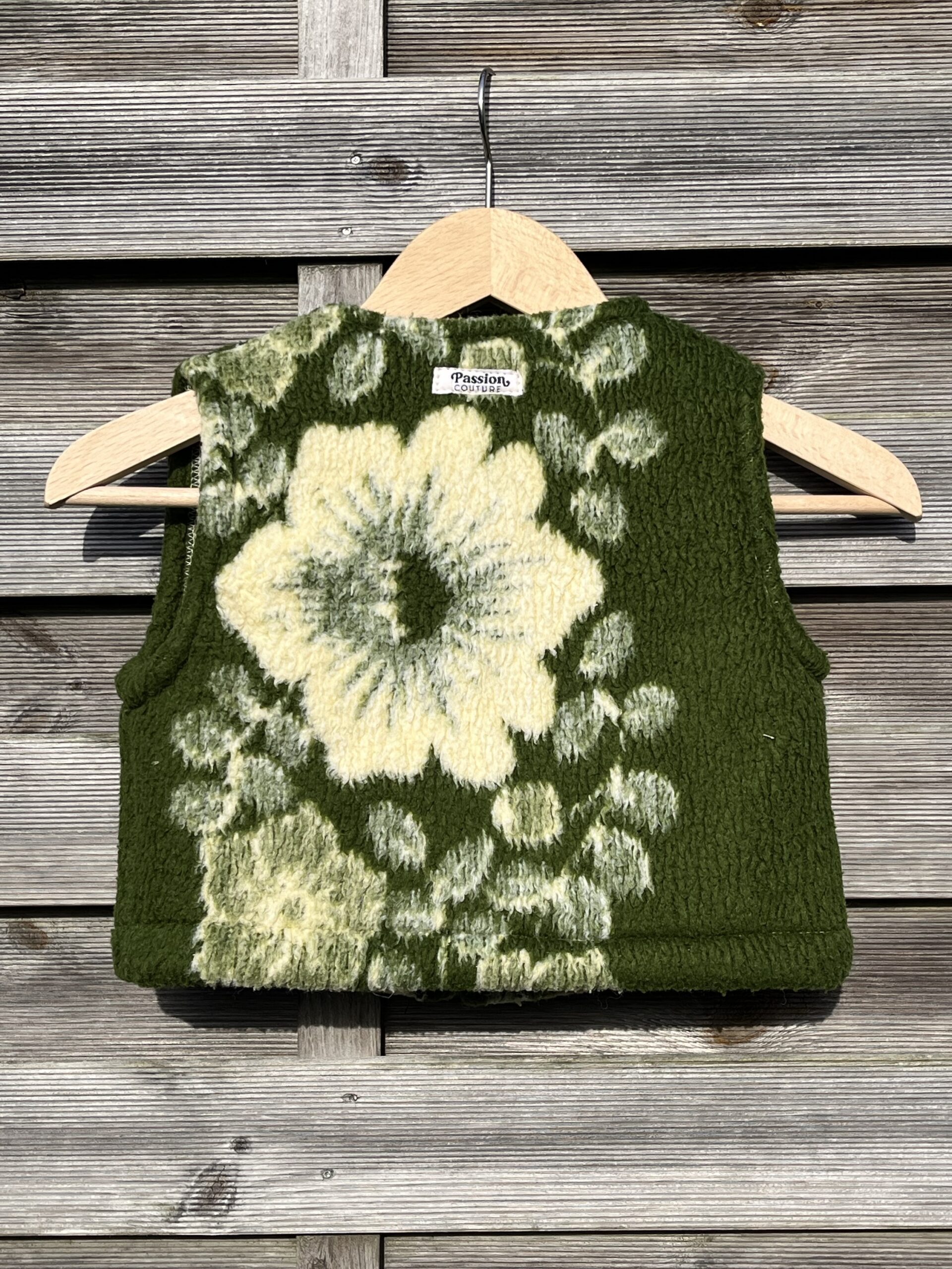Le gilet enfant est confectionné à partir de couverture et peut s’assortir avec la polaire adulte. Seul ou en duo, l’enfant n’en sera que tout mignon.
