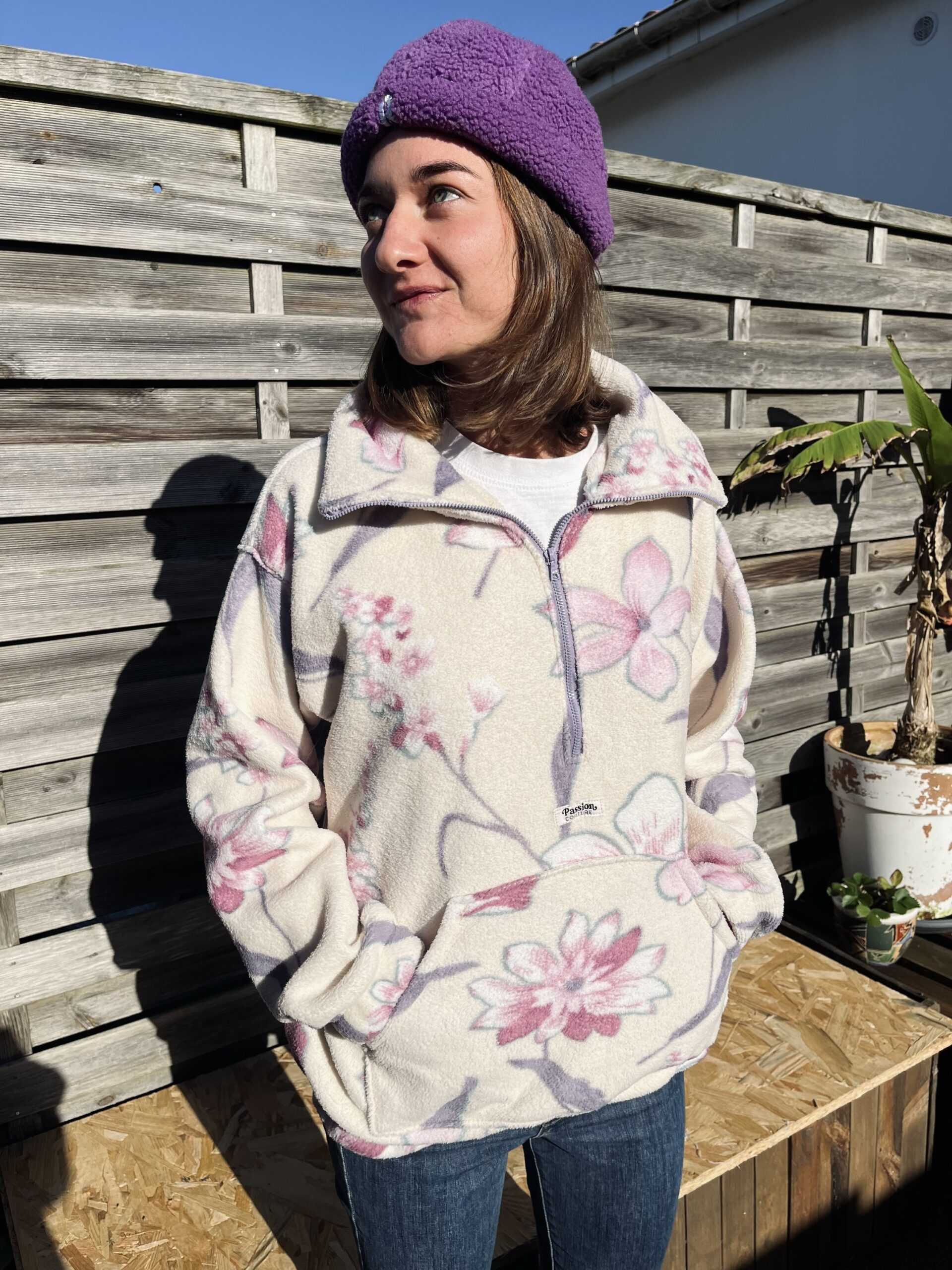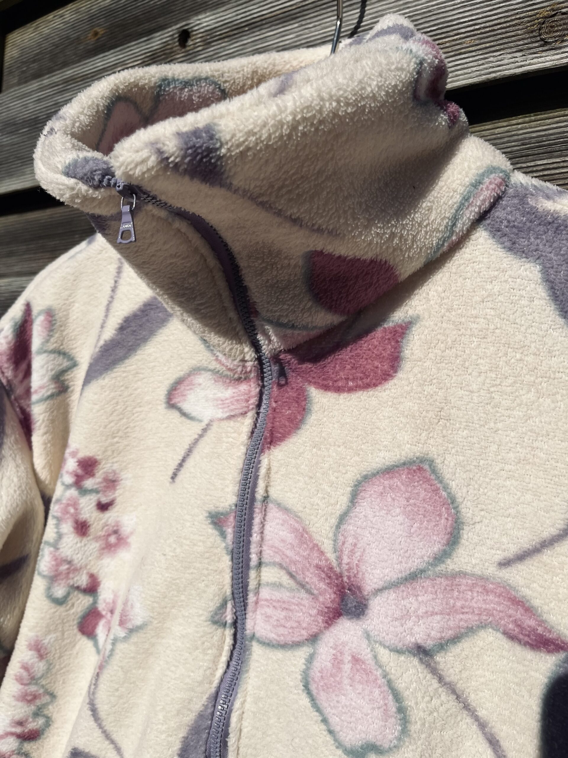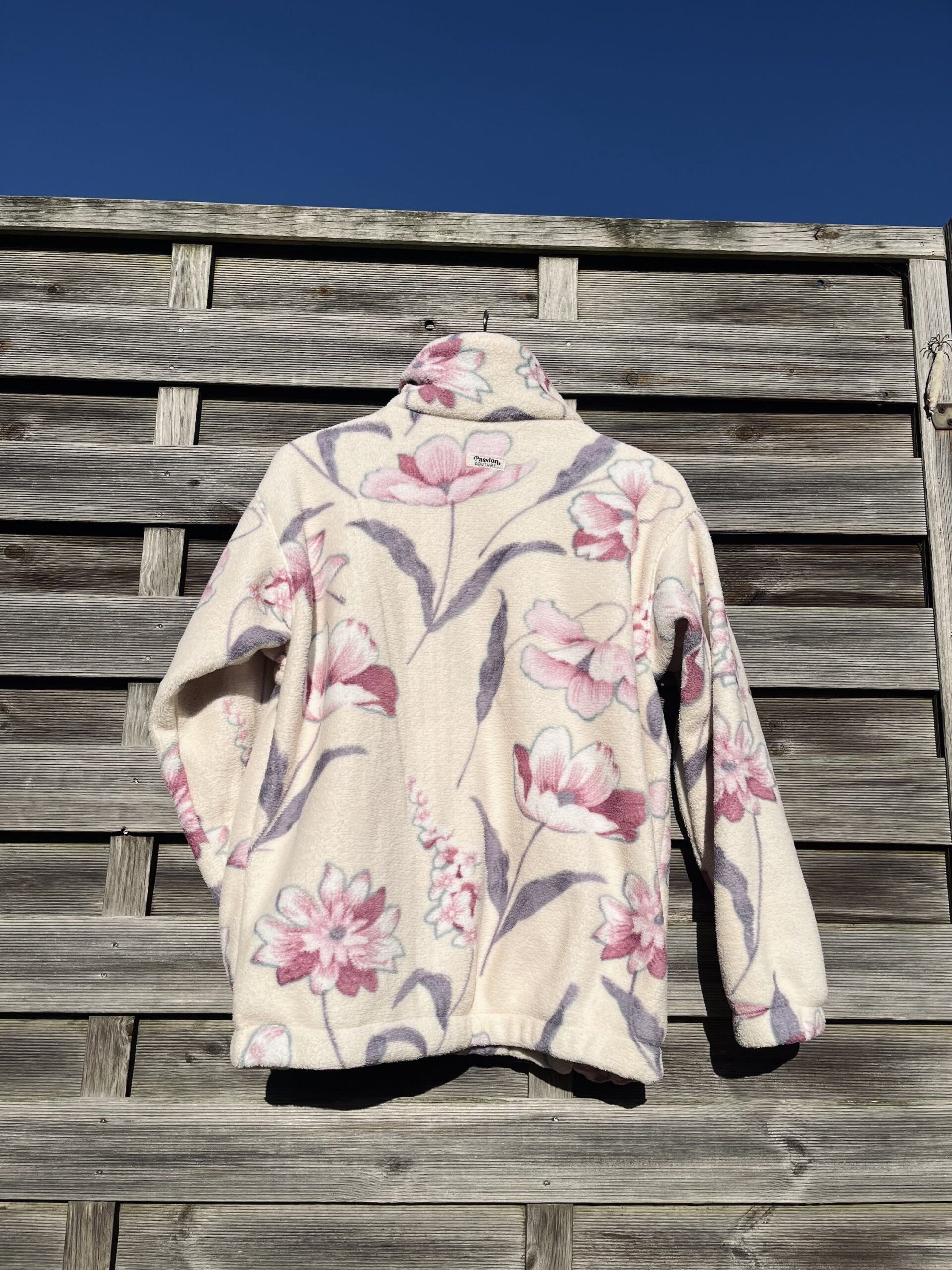 La polaire blanche à fleurs roses