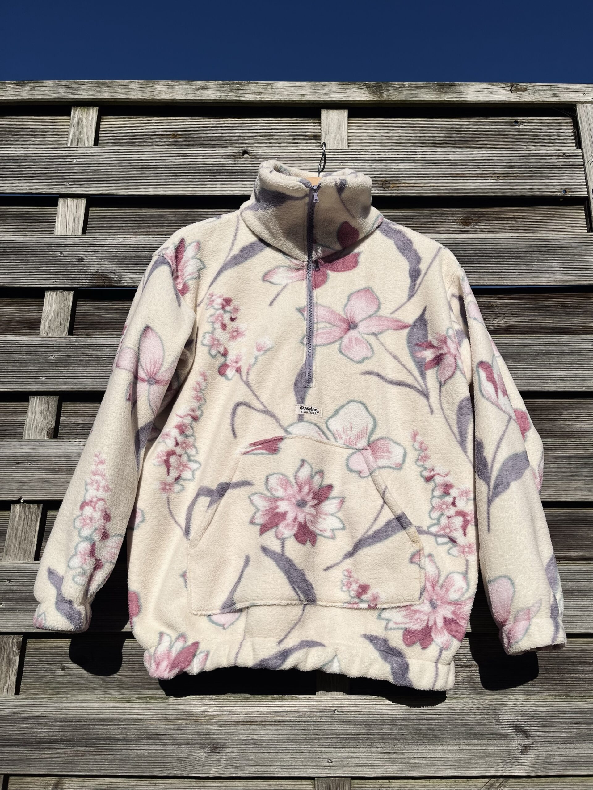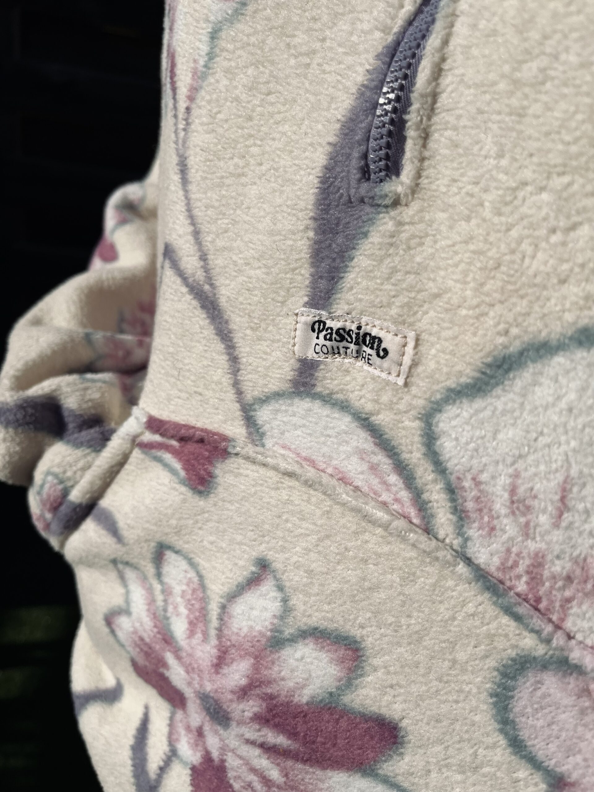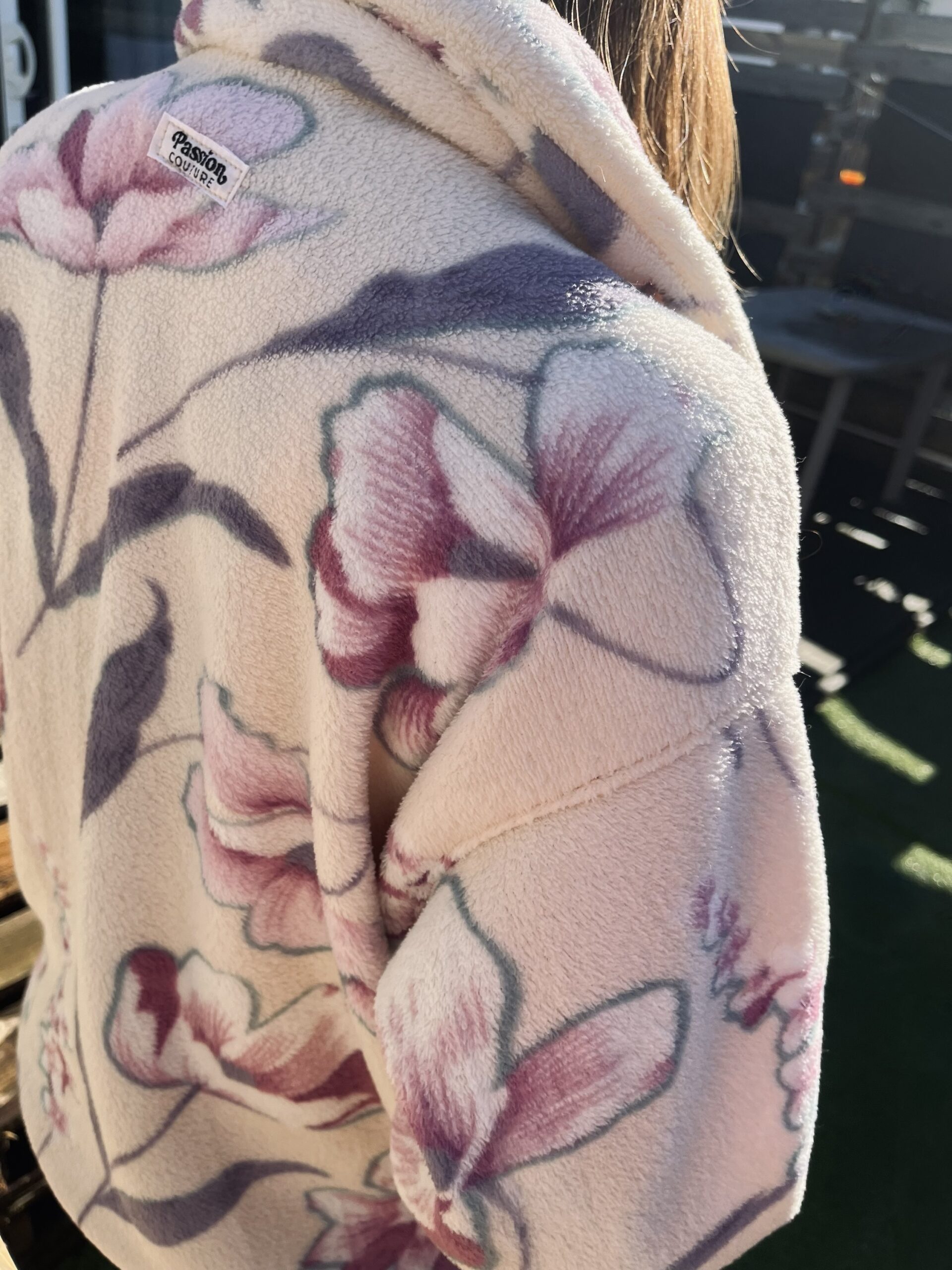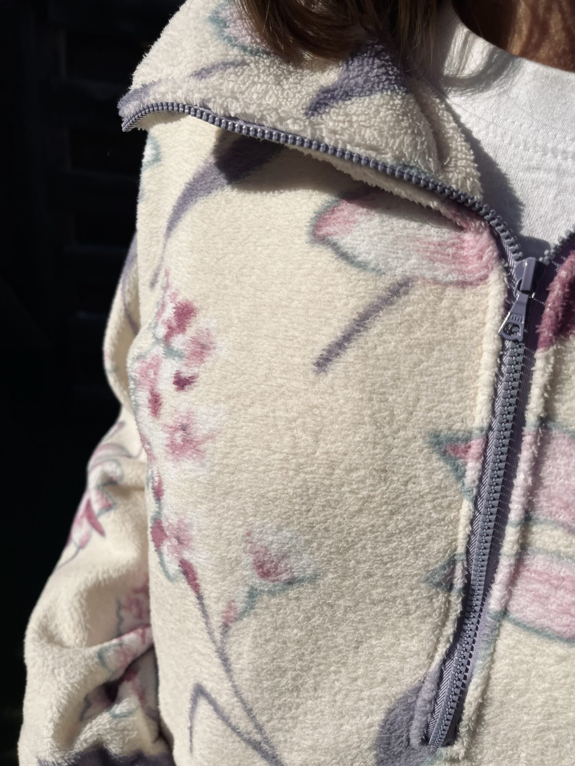 La polaire blanche à fleurs roses